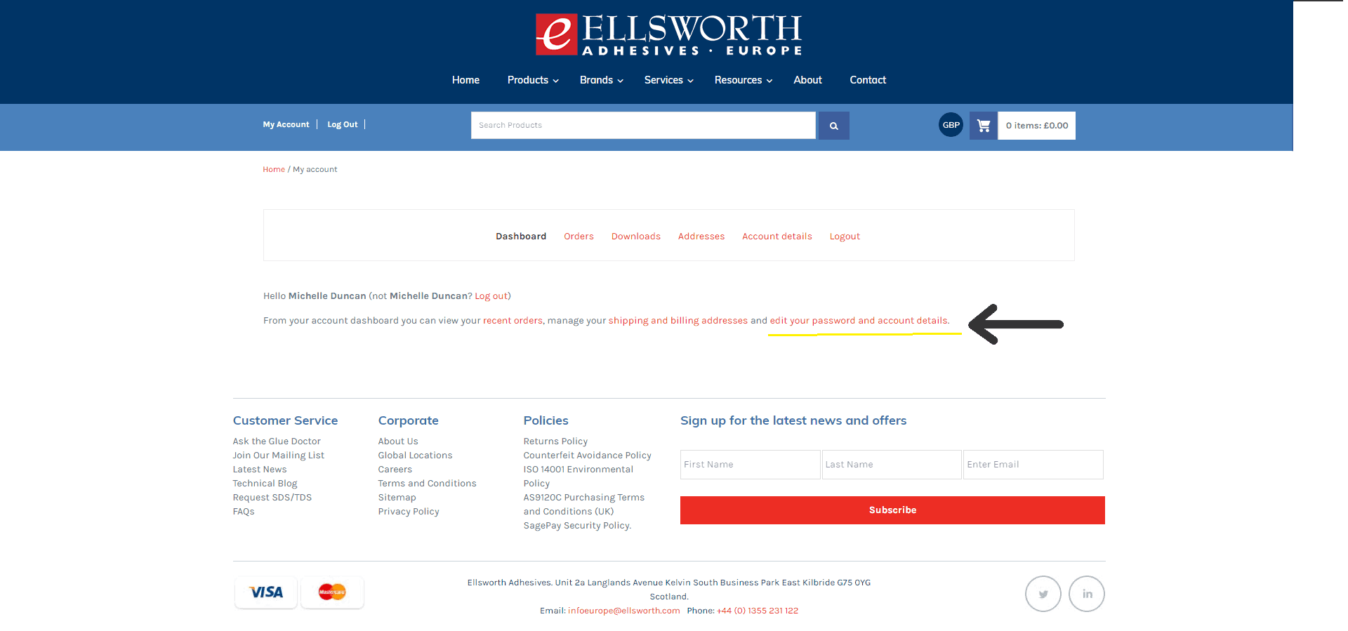 If you have made an error in your online order, please contact our Customer Service Team for assistance. Call: +44 (0) 1355 231122 or email: infoeurope@ellsworth.com