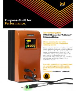 Metcal Literature Metcal Product Catalogue Download CV-510 Connection Validation™ Soldering System Data Sheet Download CV-5200 Connection Validation™ Soldering Station Data Sheet Download CV-Cartridges Catalogue Download