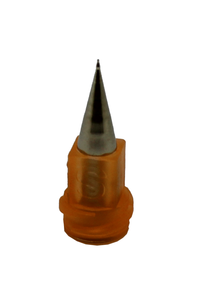 Fisnar QuantX™ 5901010 Orange Micron-S precision micro bore dispense nozzle for high accuracy micro-dot dispensing. Micron-S nozzles have a Luer Lock thread and can be used with any dispensing syringe, valve or pump. A primary design feature of this unique Luer Lock dispensing nozzle is the streamline conical fluid path which delivers substantially higher fluid flow rates and lower dispense pump back pressures.