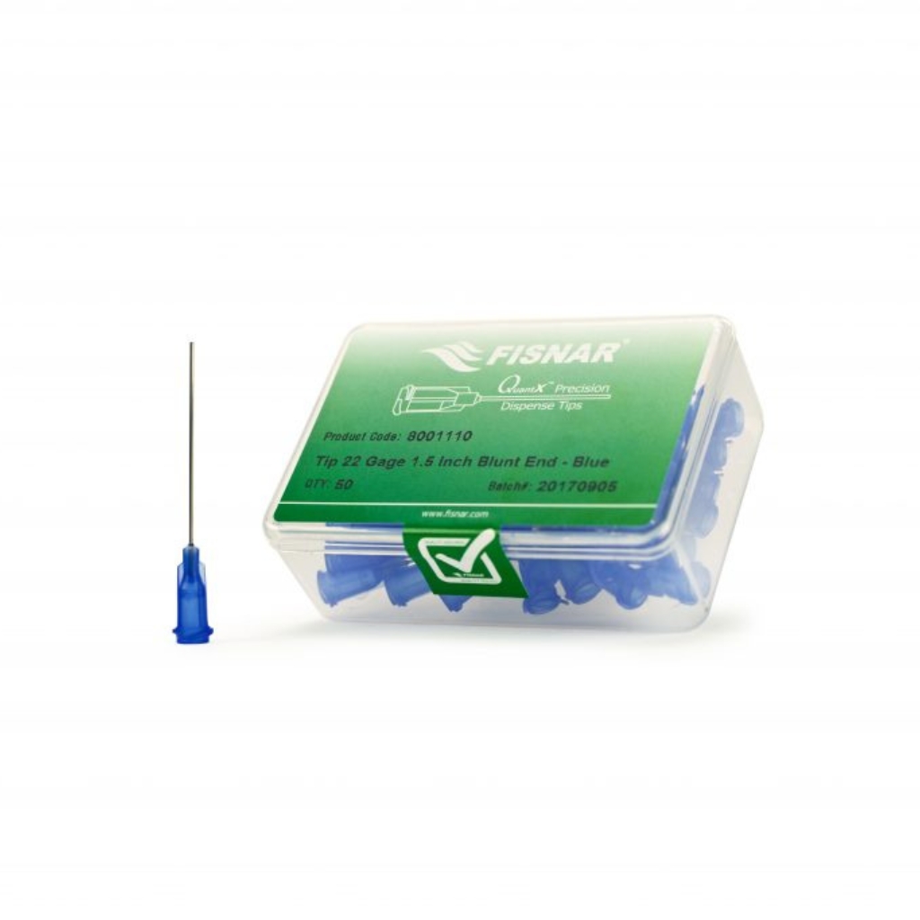 Fisnar QuantX™ 8001110 Needle Blue, straight cannula blunt end tip. Stainless steel straight cannula epoxy sealed to a double helix Luer lock polypropylene hub. Polished burr-free finish for smooth fluid dispensing.