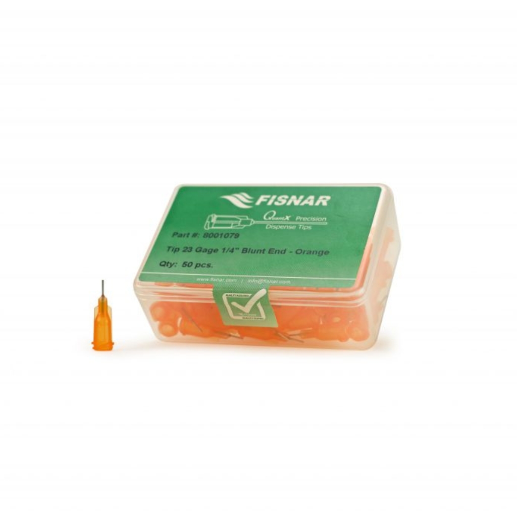 Fisnar QuantX™ 8001079 Needle Orange, straight cannula blunt end tip epoxy sealed. Stainless steel straight cannula epoxy sealed to a double helix Luer lock polypropylene hub. Polished burr-free finish for smooth fluid dispensing.