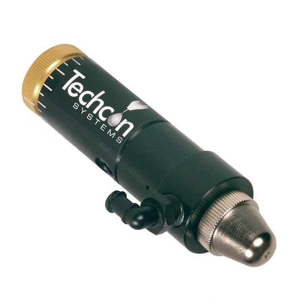 Techcon TS5520 spray valves are designed for precise spray applications of low viscosity materials. An external stroke control makes it easy for the operator to fine-tune fluid flow. Total control of the spray cycle is provided by adjustable fluid flow and precise control of prespray, atomising air and post spray with the TS566R controller.